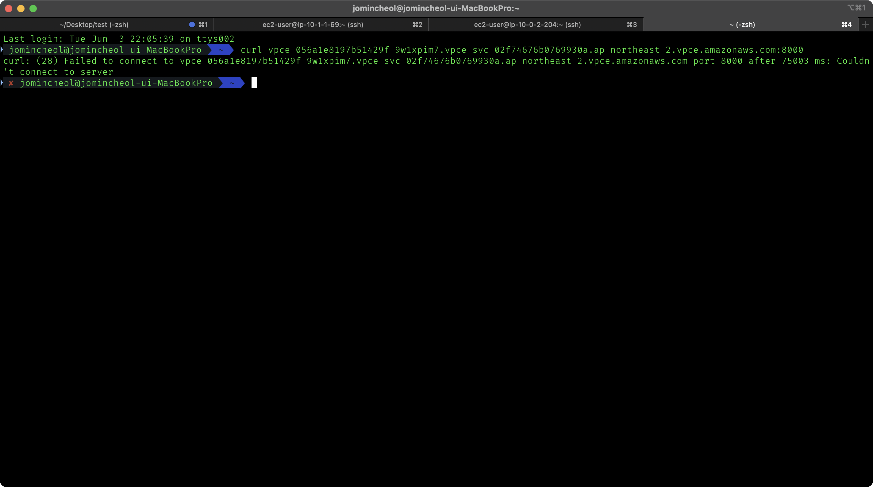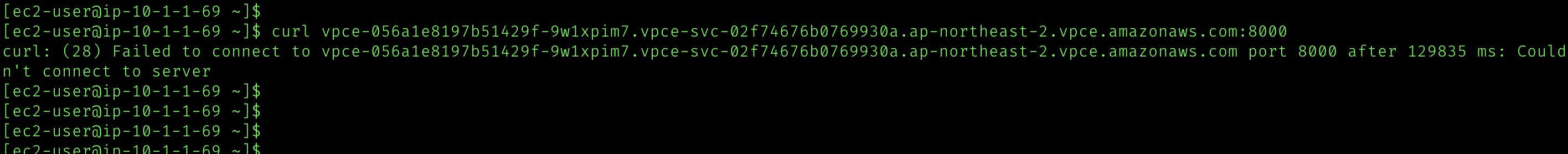 consumer vpc의 private 서브넷에서 호출하면 아주 잘 호출되는 모습을 확인할 수 있다.