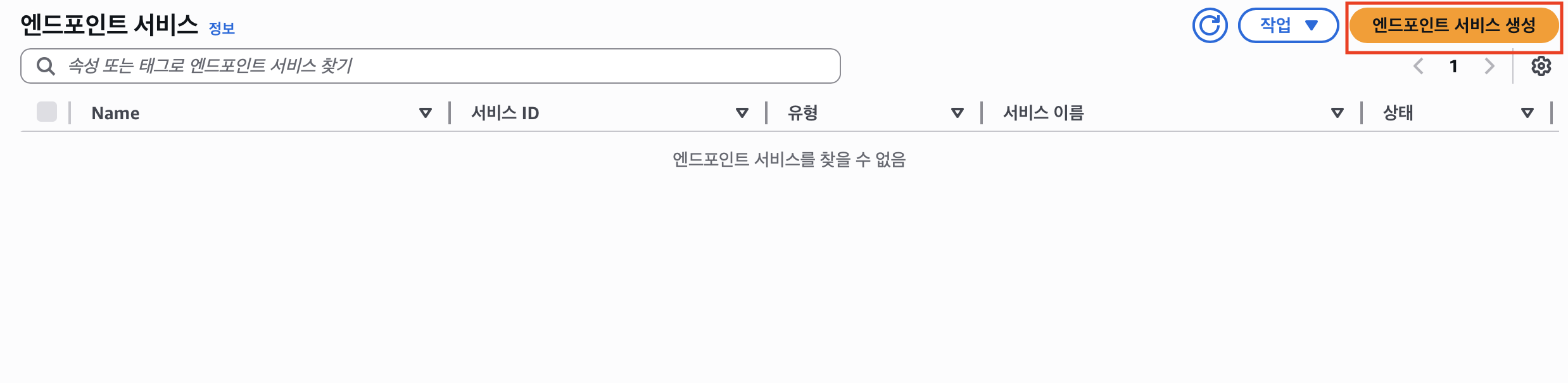 엔드 포인트 서비스에 들어가 엔드포인트 서비스를 생성해준다.