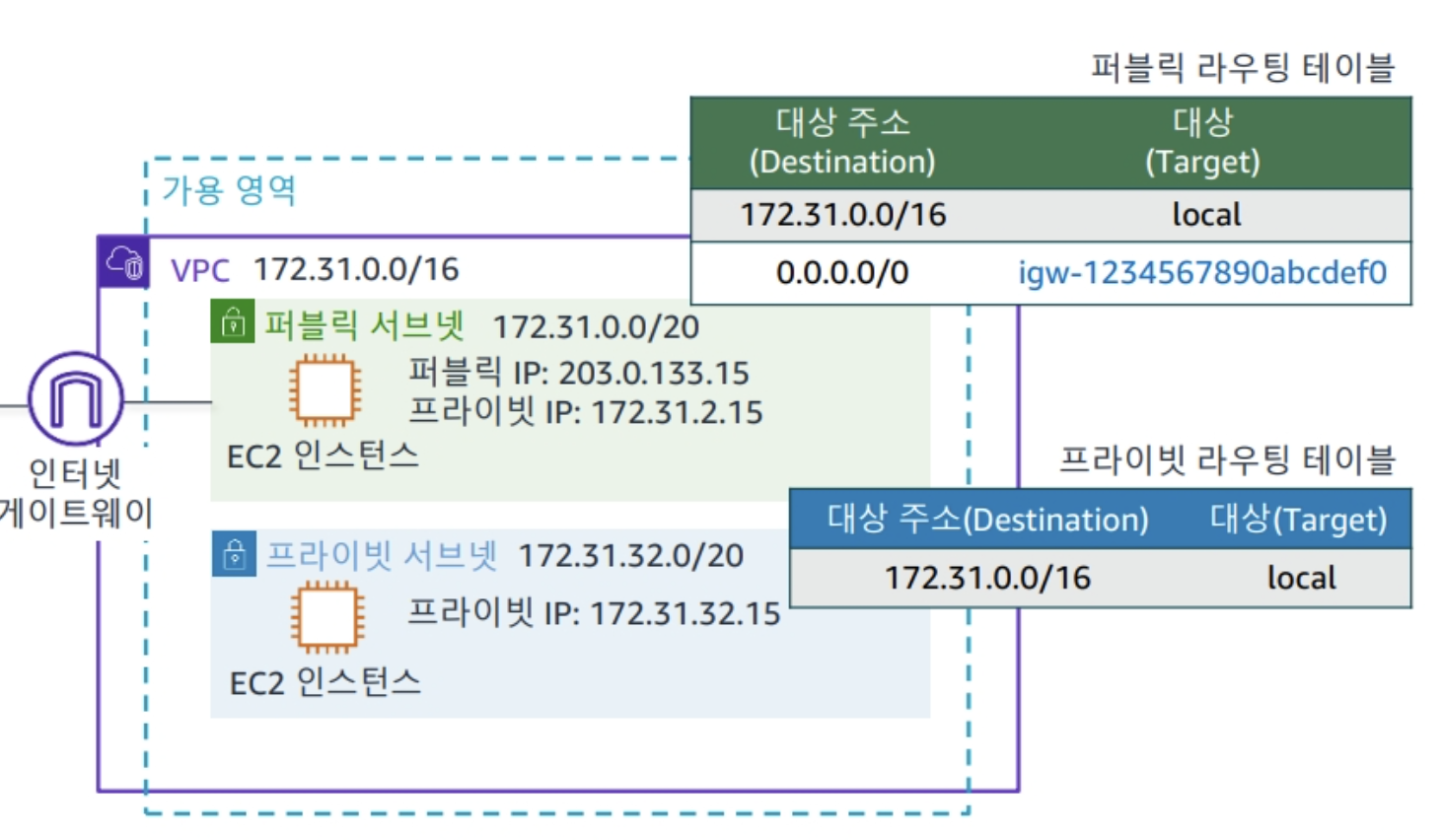 사실 퍼블릭 서브넷 과 프라이빗 서브넷을 구별하는 제일 좋은 방법은 IGW가 있는가 없는가로 구별하면 된다.