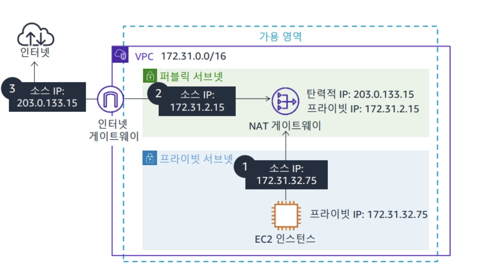IGW는 수평적으로 확장되고 고가용성이다. 주 역할은 VPC 내의 인스턴스와 인터넷 간 통신을 허용하게된다. 또한 NAT(주소 변환)을 통해 IP 주소를 보호하게 된다.