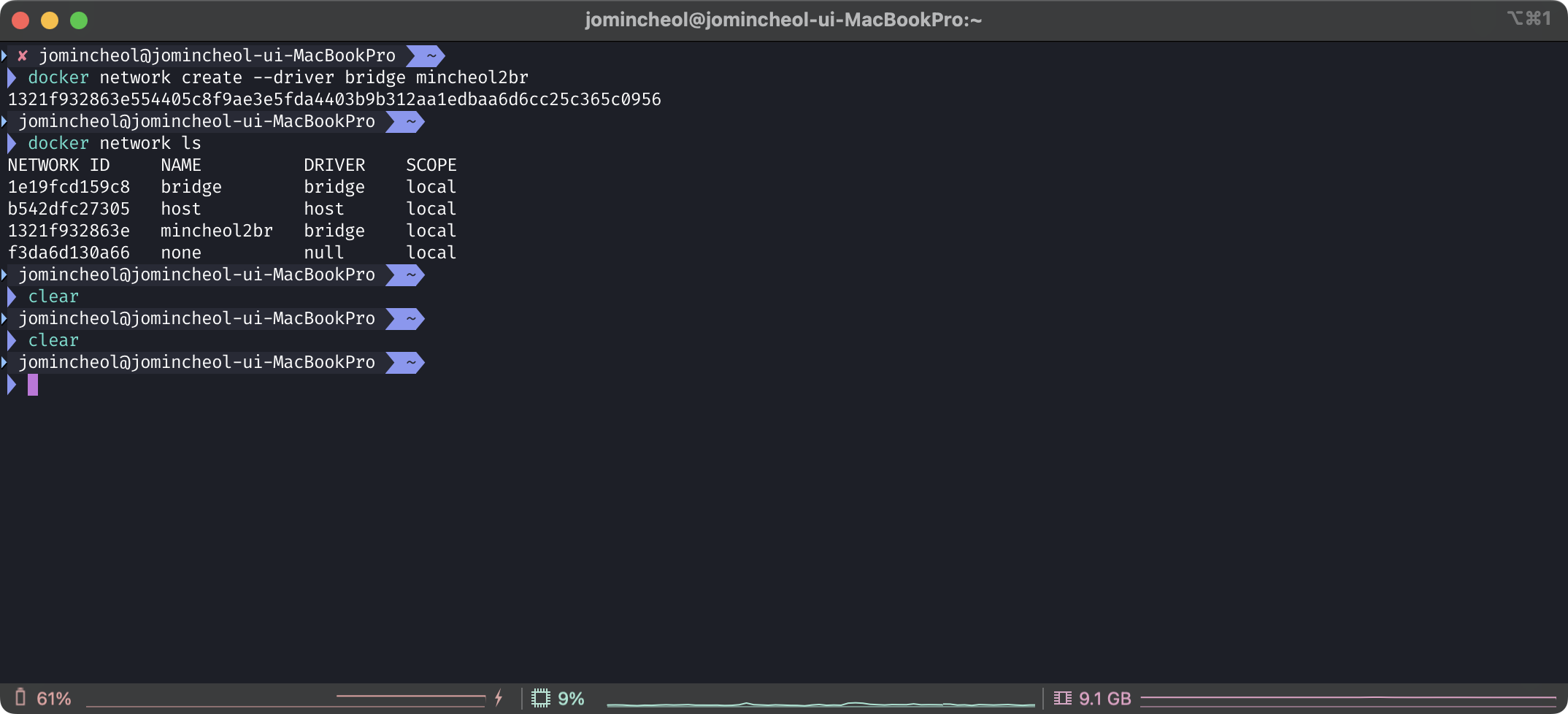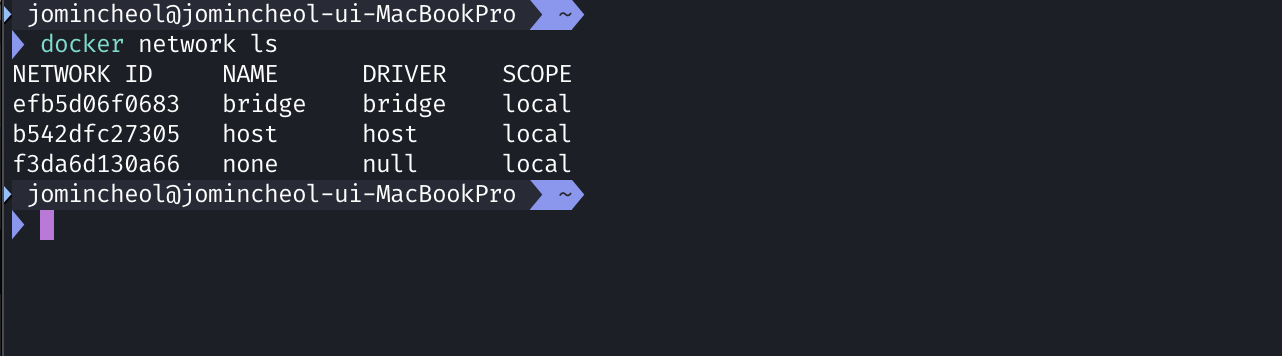 bridge 형식으로 만든 네트워크를 ls 명령어로 확인해보니 잘 생성되었다는것을 확인이 가능하다.