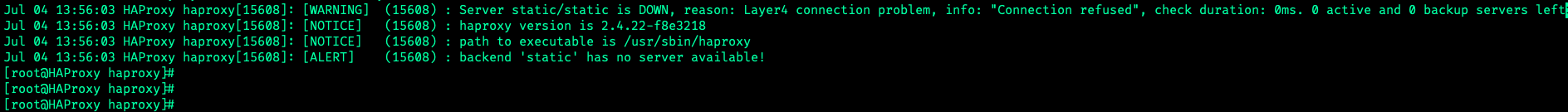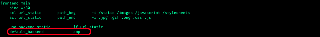 설정파일에서 default_backend 항목에 app이라고 되어있는 것을 확인했다. 기본적으로 backend app으로 트래픽을 분배해주는 옵션인거 같아 static으로 변경했다.