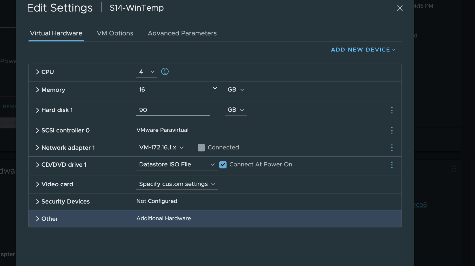 먼저 vSphere에서 VM을 만들어준다. 사양은 다음과 같다.