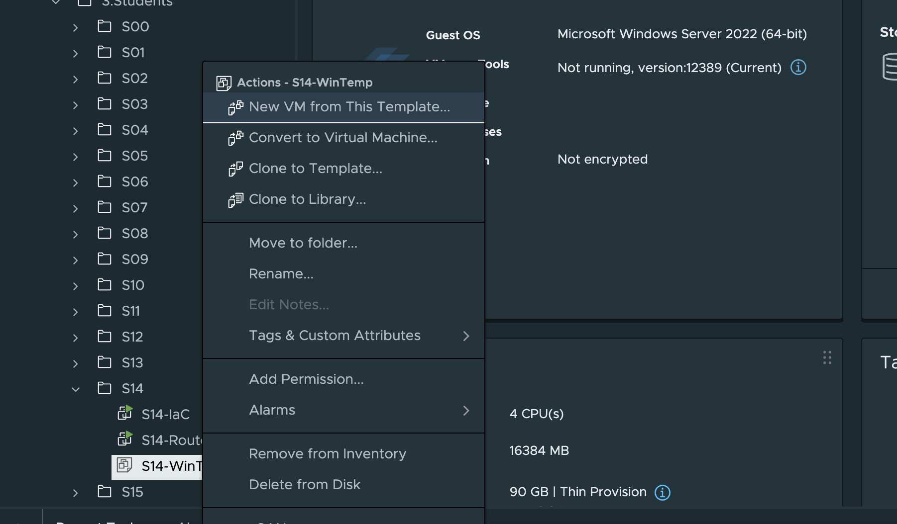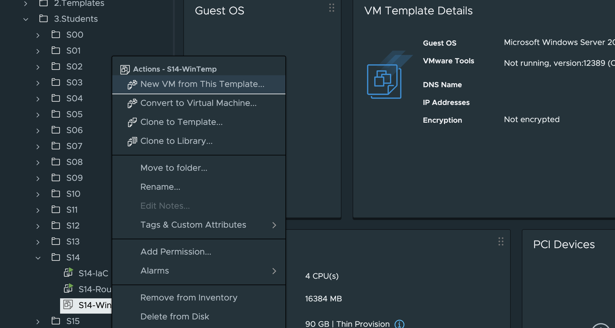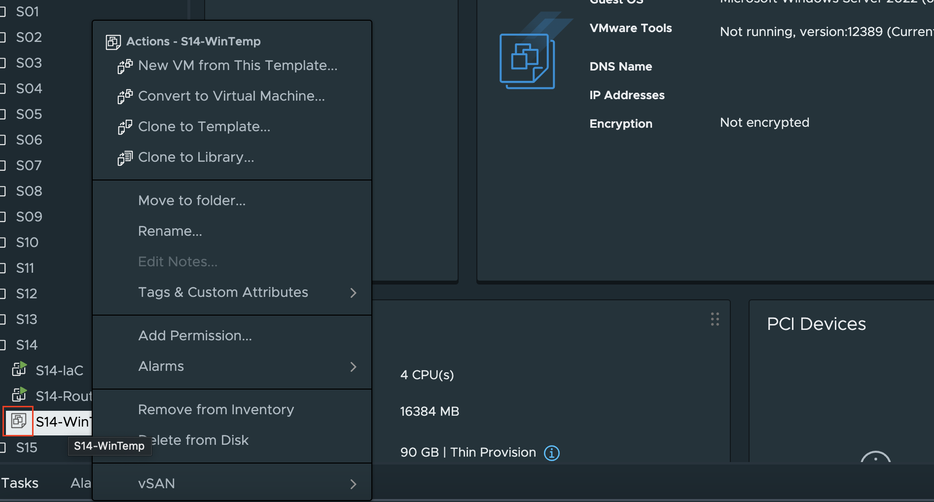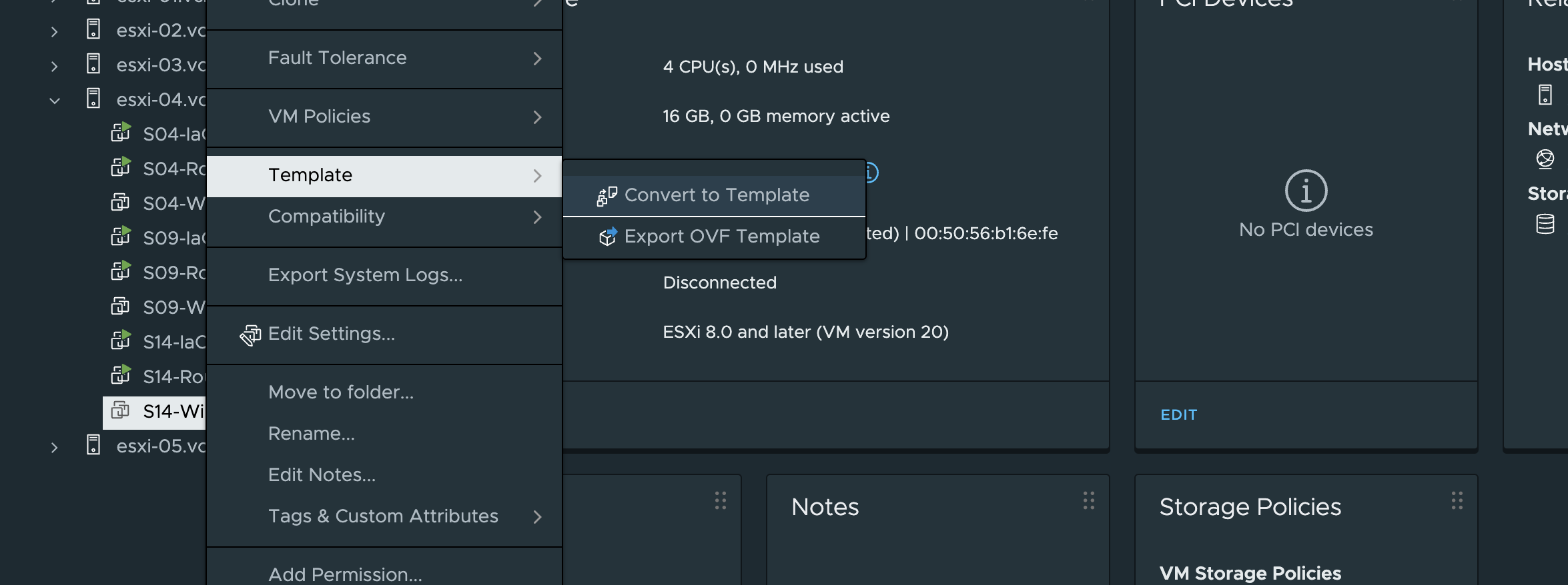 다음으로는 VMware 템플릿을 생성해본다. 템플릿화 하고 싶은 VM을 선택후 우클릭하면 Convert to Template 항목을 선택해준다.