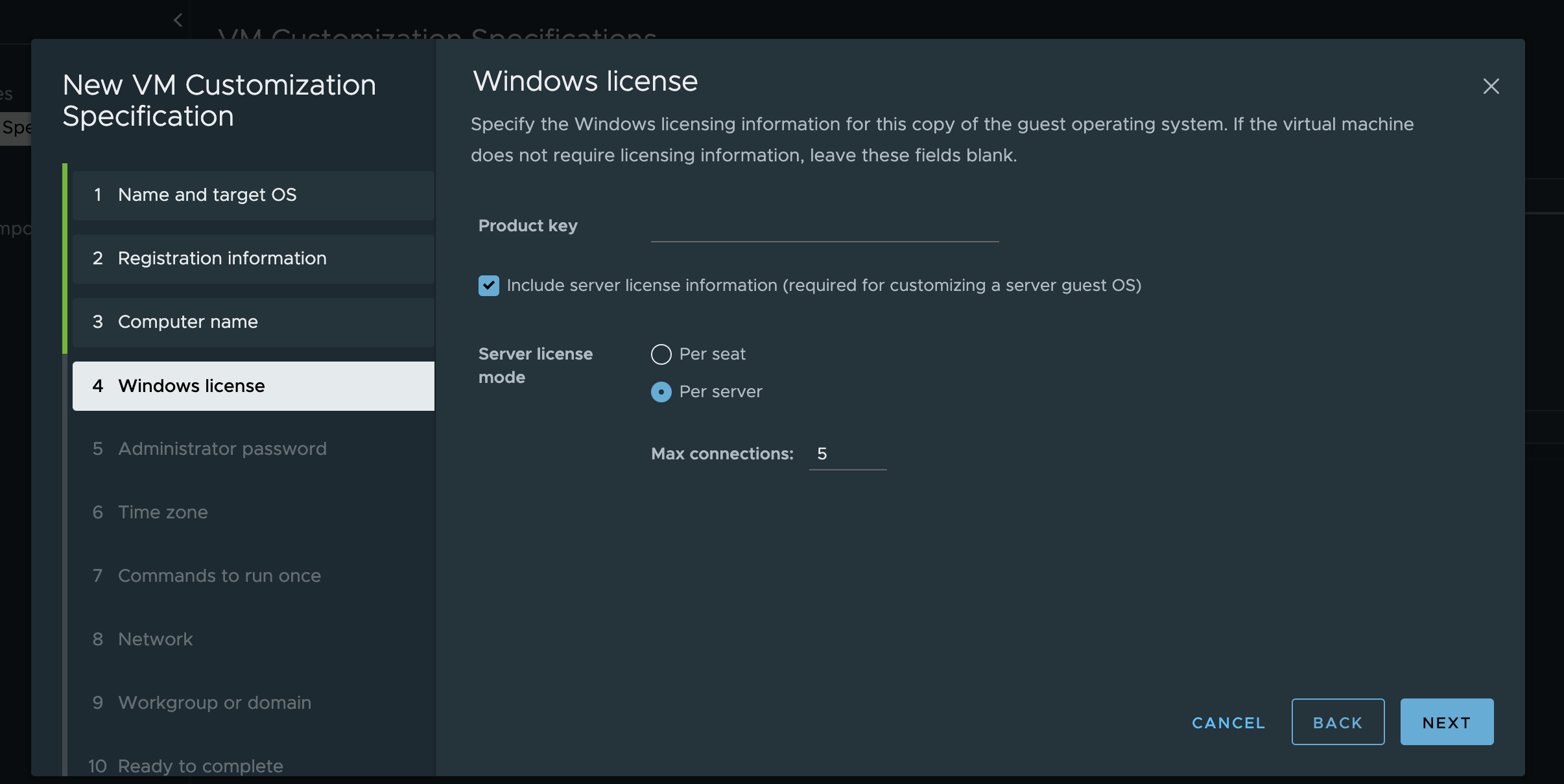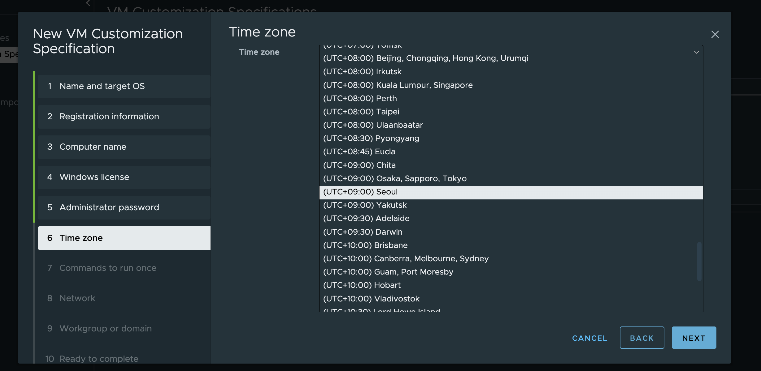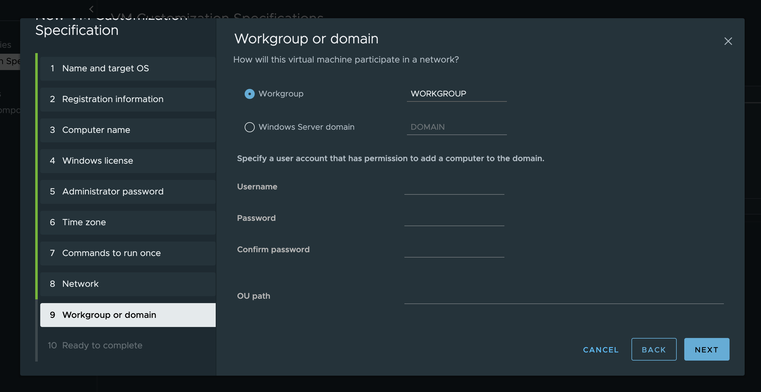여기서 VM Customization Specifications 항목으로 이동한다. 그다음 NEW를 클릭해 생성해준다.