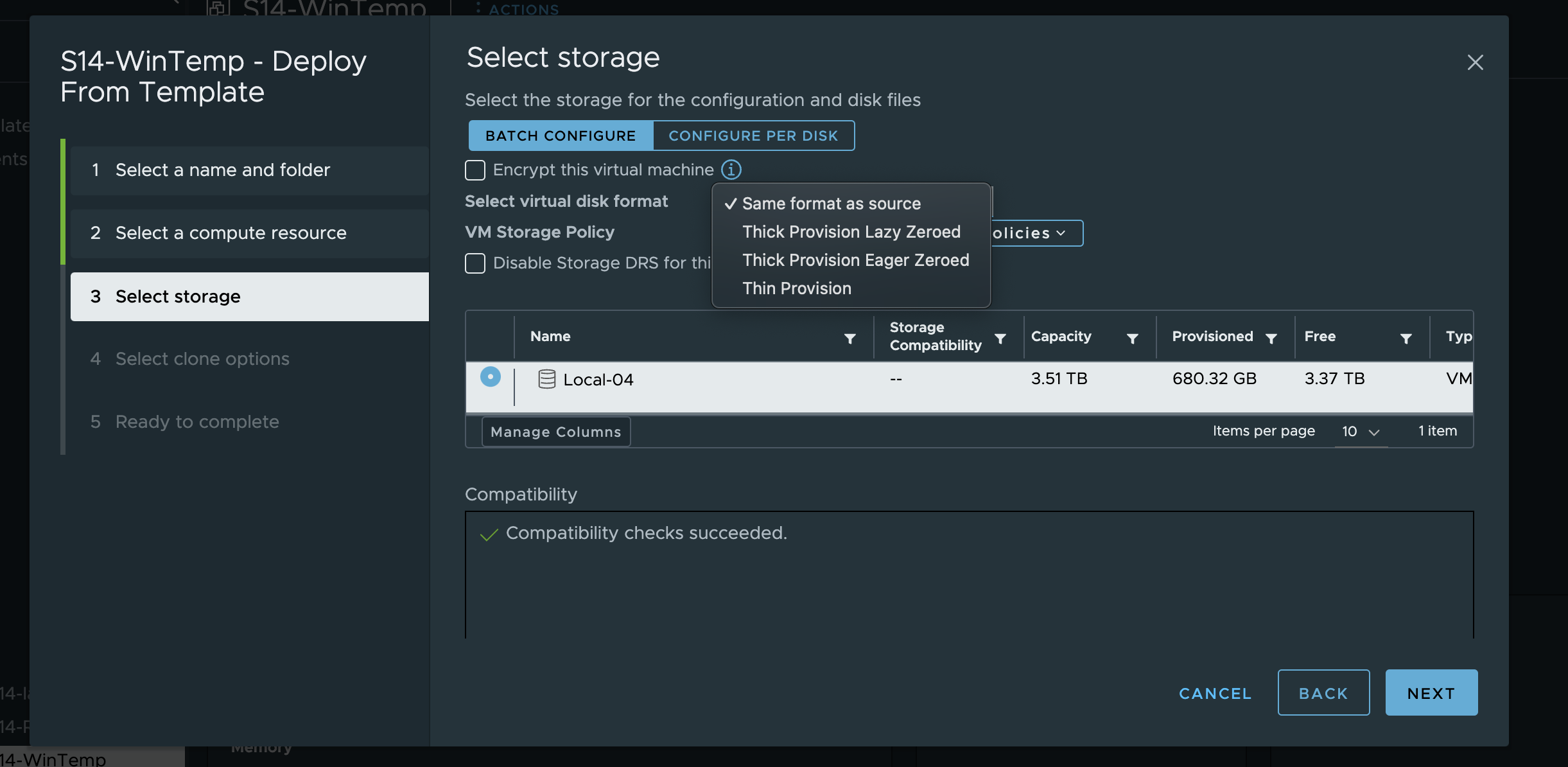 또한 Storage를 확인해보면 vmtx라는 파일이 만들어졌는데 오른쪽에 Tempate VM이라고 적혀져 있는 모습을 확인가능하다.
