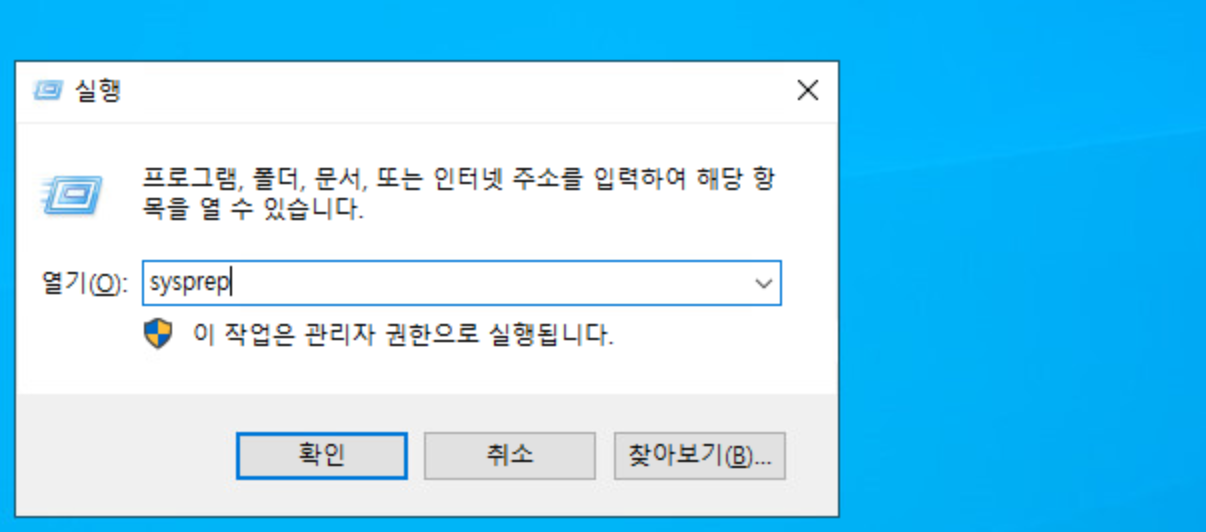 윈도우+r를 눌러 실행 창으로 들어간다. sysprep을 치면 다음과 같은 폴더로 이동하게된다.