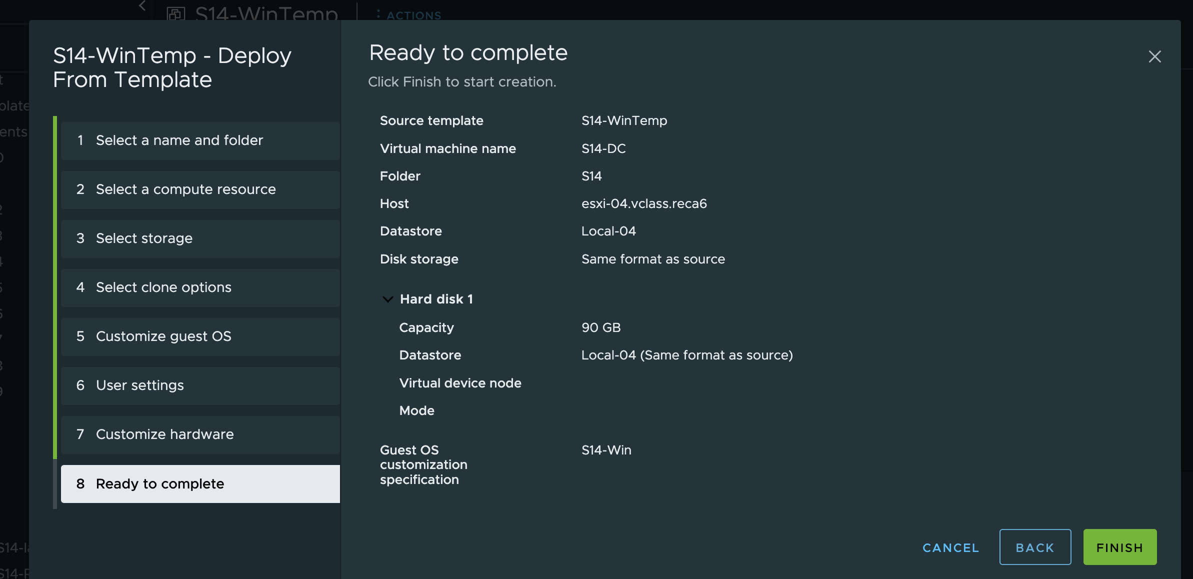 다시 마지막으로 설정한 값을 확인하고 FINISH 버튼을 눌러주면 윈도우 템플릿으로 만들었던 복제본이 생성된다.