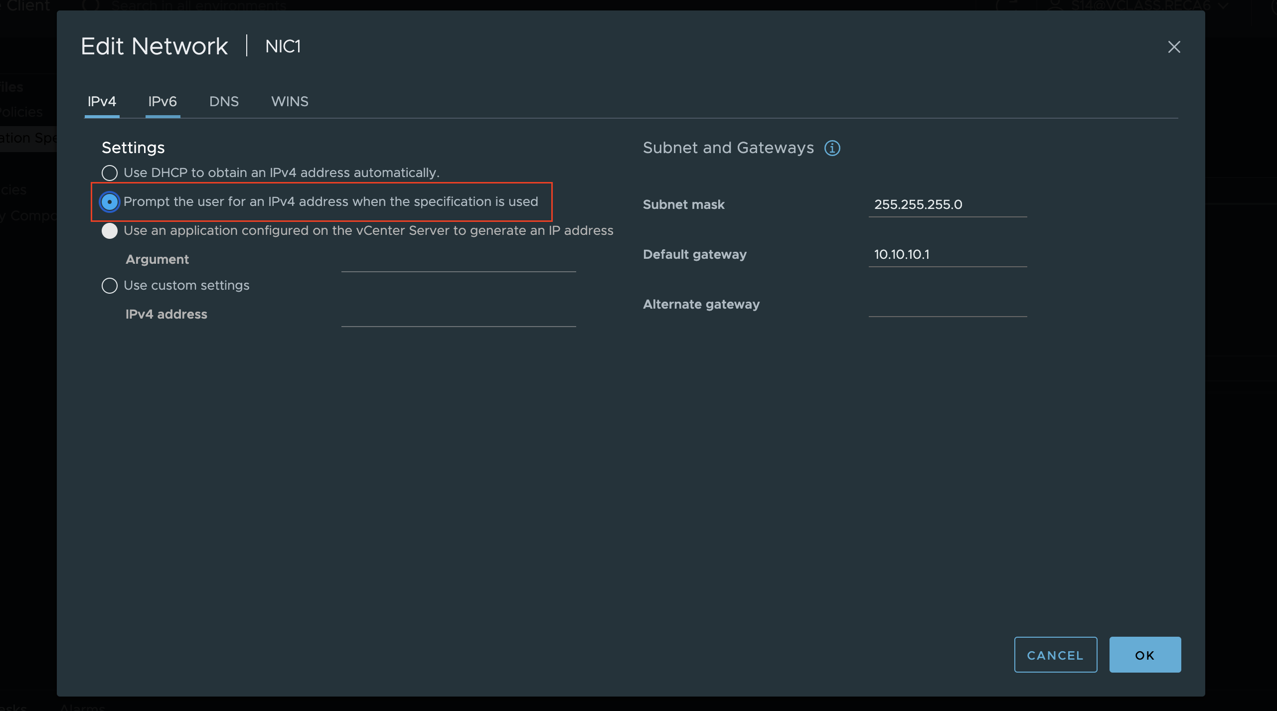 IPv4를 선택해준다음 Prompt the user for an IPv4 address when the specification is used 를 선택해준다. 그말은 즉 유저 사용자에게 IP를 물어보겠다는 말이다. ****