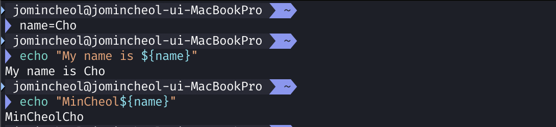 $ echo "MinCheol${name}"