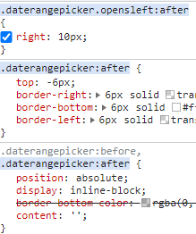 bootstrap-daterangepicker 에서는 모달의 arrow 영역을 ::after 로 처리하고 있었다.