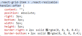 react-grid-layout 에서는 컴포넌트를 리사이징하기 위한 영역의 버튼? 을 ::after로 처리하고 있었다.