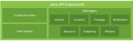 기본적인 세트들은 모두 Java 언어로 작성, 이 API는 앱을 제작하는 데 필요한 빌딩 블록 구성