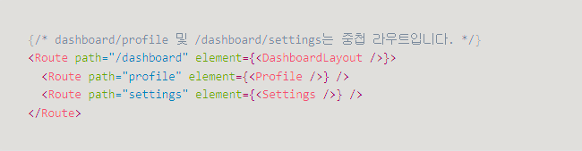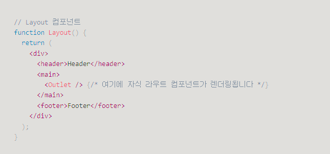 중첩된 라우트의 자식 컴포넌트를 렌더링하는 데 사용됨.