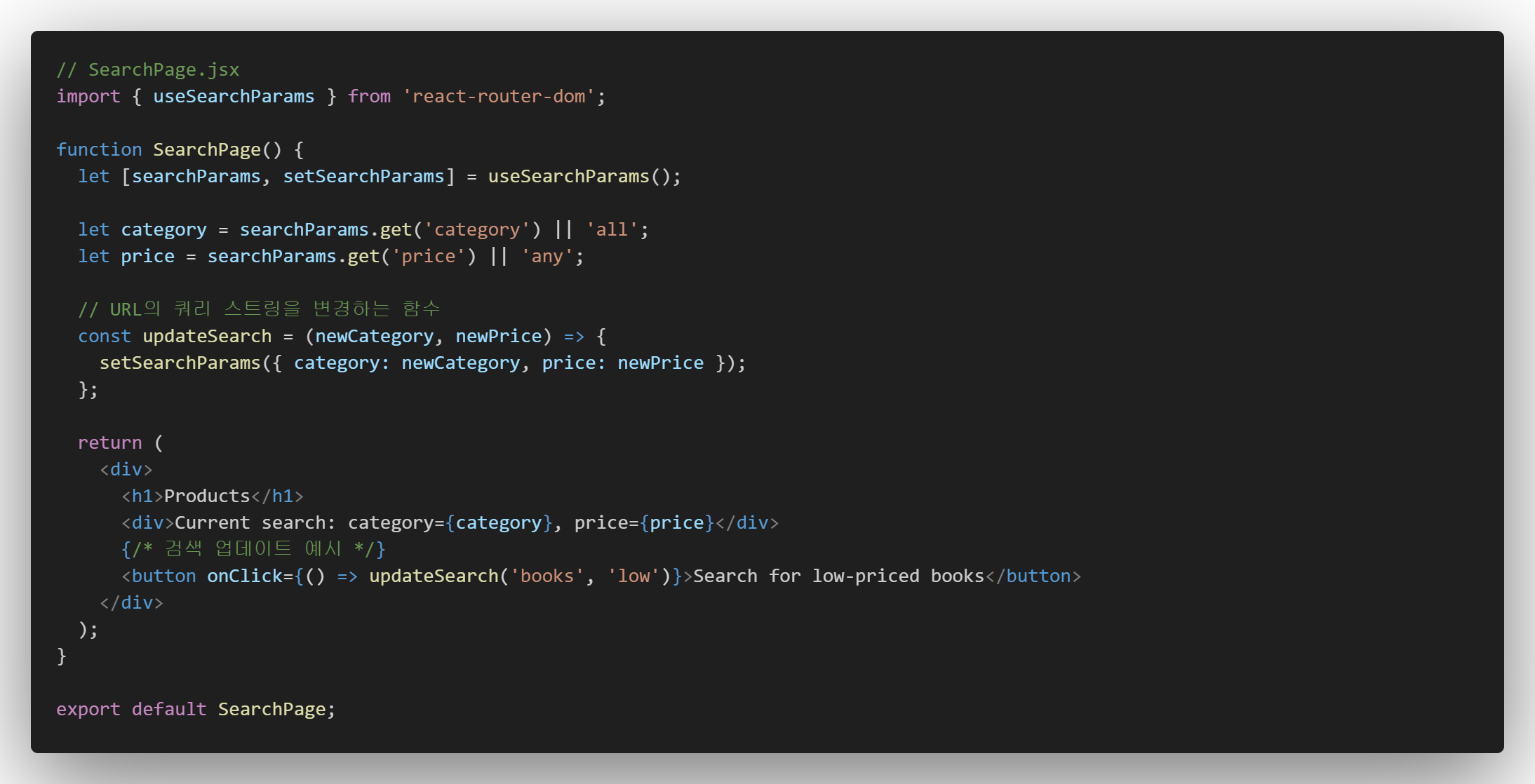 useSearchParams는 쿼리 파라미터의 상태를 관리하고, 이를 변경할 때 URL을 자동으로 업데이트한다.