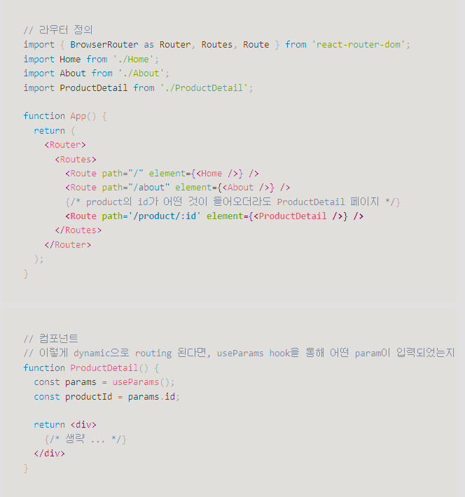 URL 파라미터와 검색 매개변수에 접근할 수 있다.