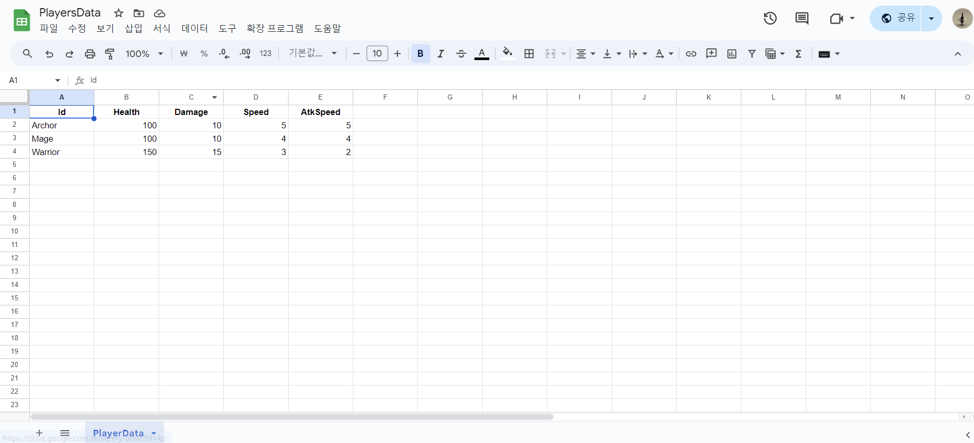 그 다음 스프레드 시트를 작성하는데 나는 다음과 같이 작성하였다.