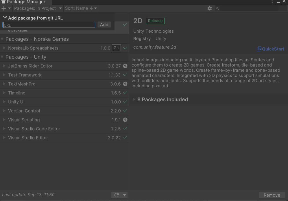 다음과 같이 Package Manager에 들어간 뒤