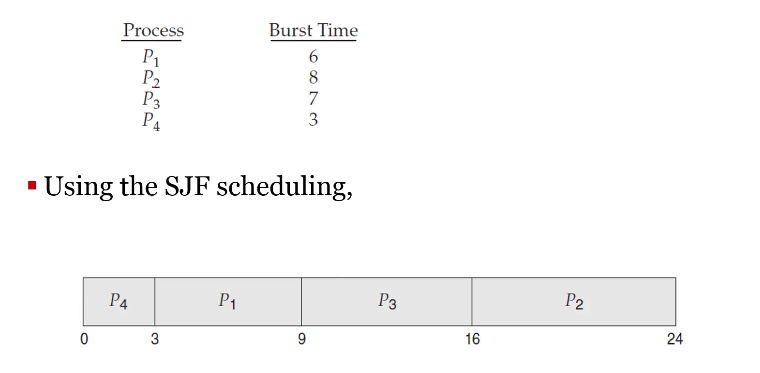 SJF는 각 프로세스의 next CPU burst길이와 관련있다.