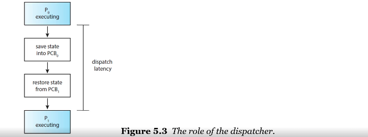 CPU 스케줄러에의해 선택된 프로세스에게 CPU 코어의 제어를 주는 것을 디스패처라고 한다.