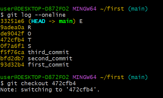 git checkout <commit id> : 해당 커밋으로 체크아웃