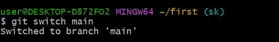 git switch 이름 : 해당 브랜치로 이동