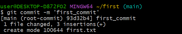 git commit -m '<메시지>': commit (-am: 한번 add된 파일을 스테이지에 올리지 않고 바로 commit)