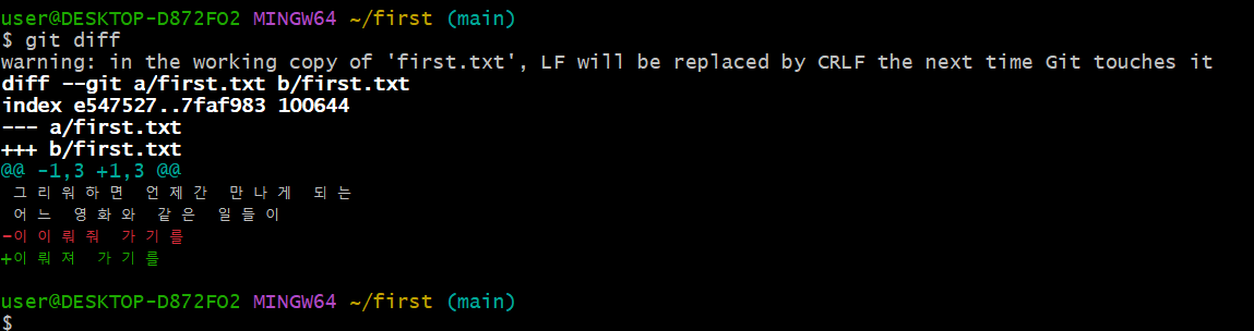git diff: 변경 부분 확인