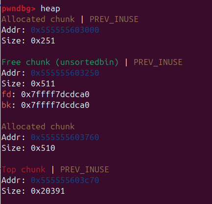 단 해제할 청크가 탑청크와 맞닿으면 병합이 이뤄지므로 청크 두 개를 연속으로 할당하고, 처음 할당한 청크를 해제해야한다.