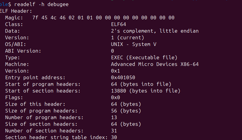 리눅스의 실행파일은 ELF 형식을 가지고 있다. ELF는 헤더와 여러 섹션으로 구성된다. 헤더에는 진입점(Entry Point, EP)가 있는데 운영체제는 진입점의 값부터 프로그램을 실행한다.