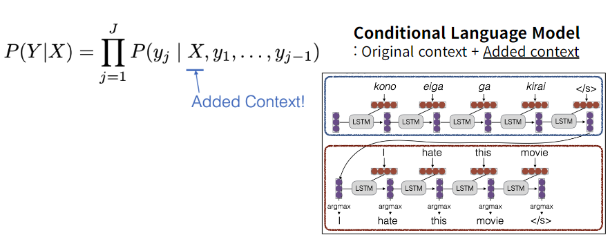 conditional language model 의 경우, 원래 context 를 제외한 added context가 존재한다.