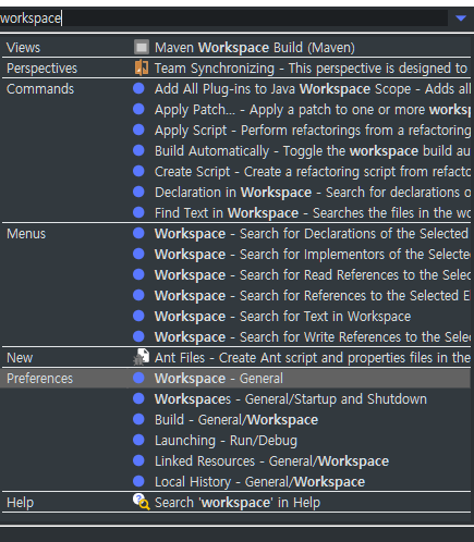 workspace로 검색을 해준다. Preferences > workspace > General을 클릭해주고