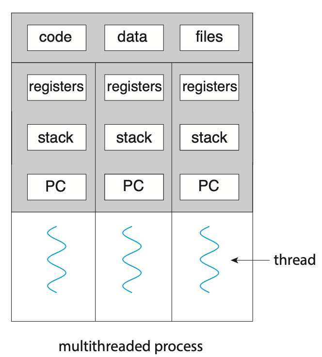 같은 프로세스에 속한 다른 스레드와 코드, 데이터 섹션, 그리고 열린 파일이나 신호와 같은 운영체제 자원들을 공유