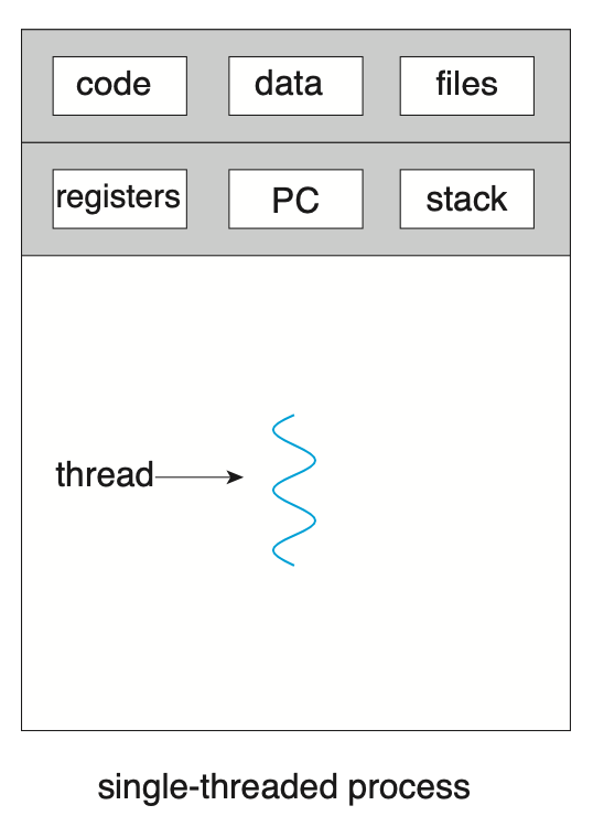 스레드 ID, 프로그램 카운터(PC), 레지스터 집합, 스택으로 구성