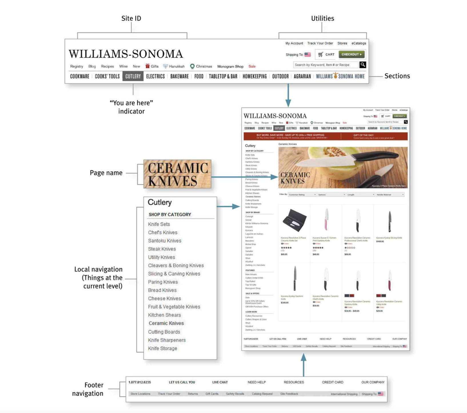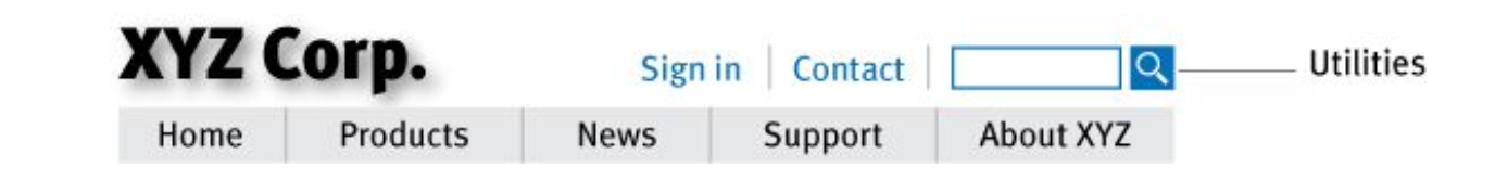 Utilities are the links to important elements of the site that aren’t really part of the content hierarchy.