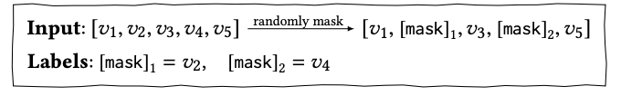 단방향 모델과는 다르게 양방향 모델인 BERT4Rec은 손봐야할게 있다. 일단 s1 s2 s3 s4가 주어지고 s5에 대한 것을 예측하면 되는 단방향 모델들과는 다르게 BERT4Rec은 양방향 모델이기 때문에 mask를 해서 sample들을 생성해주어야하고 각 historical subsequence를 양방향 모델로 인코딩하여 target item을 예측해야한다. 하지만 이런 접근 방식은 매우 많은 시간과 자원을 소모한다. 이를 해결하기 위해 Cloze task를 적용한다. 각 training 단계에서 input sequence의 모든 item 중에서 p 비율로 random masking하고, 좌우 context만을 기반으로 masking된 item의 원래 ID를 예측하는 것이다. 예를 들면 아래와 같다.