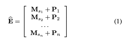 input embedding matrix E는 item embedding matrix M과 position embedding P의 합으로 아래와 같이 나타내진다.