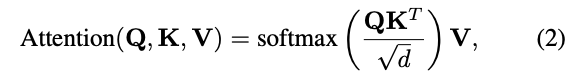 Transfomer에서 나오는 self-attention은 아래와 같이 표현된다 (혹시 모른다면 transfomer 논문 참고).