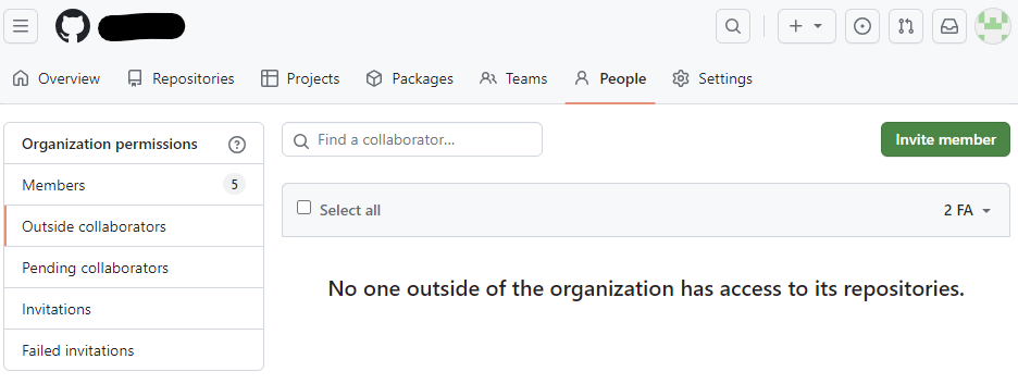 - 조직의 멤버가 특정 사용자를 조직의 Collaborator로 초대한 경우, 그 사용자는 "Pending collaborators" 목록에 표시되고, 초대를 수락하면 이 사용자는 외부 공동 작업자로 추가된다.