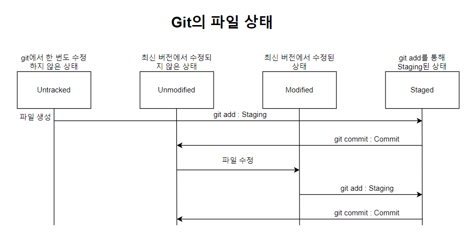 → 바로 위 파일의 상태 부분에서 Modified, Staged, Unmodified 부분을 생각하면 된다.