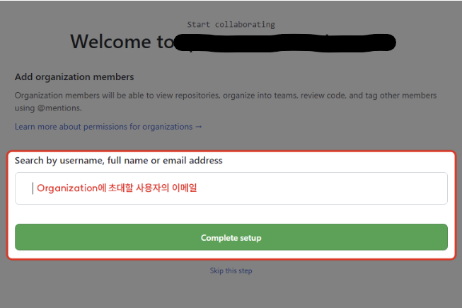 일종의 단체 계정. 개인 계정에서 저장소(Repository)를 만들어서 다른 개발자를 초대해 협업을 할 수 있지만, Organization을 사용하면 좀 더 쉽게 단체의 Repository를 이용해 멤버를 관리하면서 협업할 수 있다.