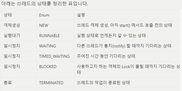 쓰레드도 상태가 존재하고 이를 제어를 할 수 있다.