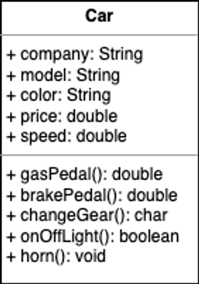 ex. 자동차의 속성 : 회사, 모델, 가격, 속도 등