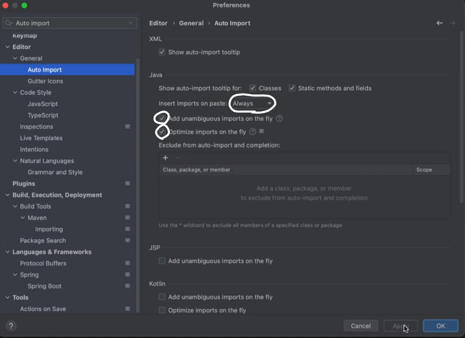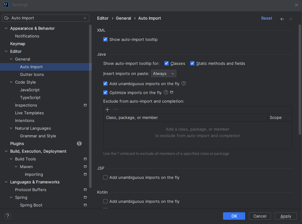- Java의 Package 또는 다른 외부 Package 라이브러리들을 자동으로 import해주는 기능