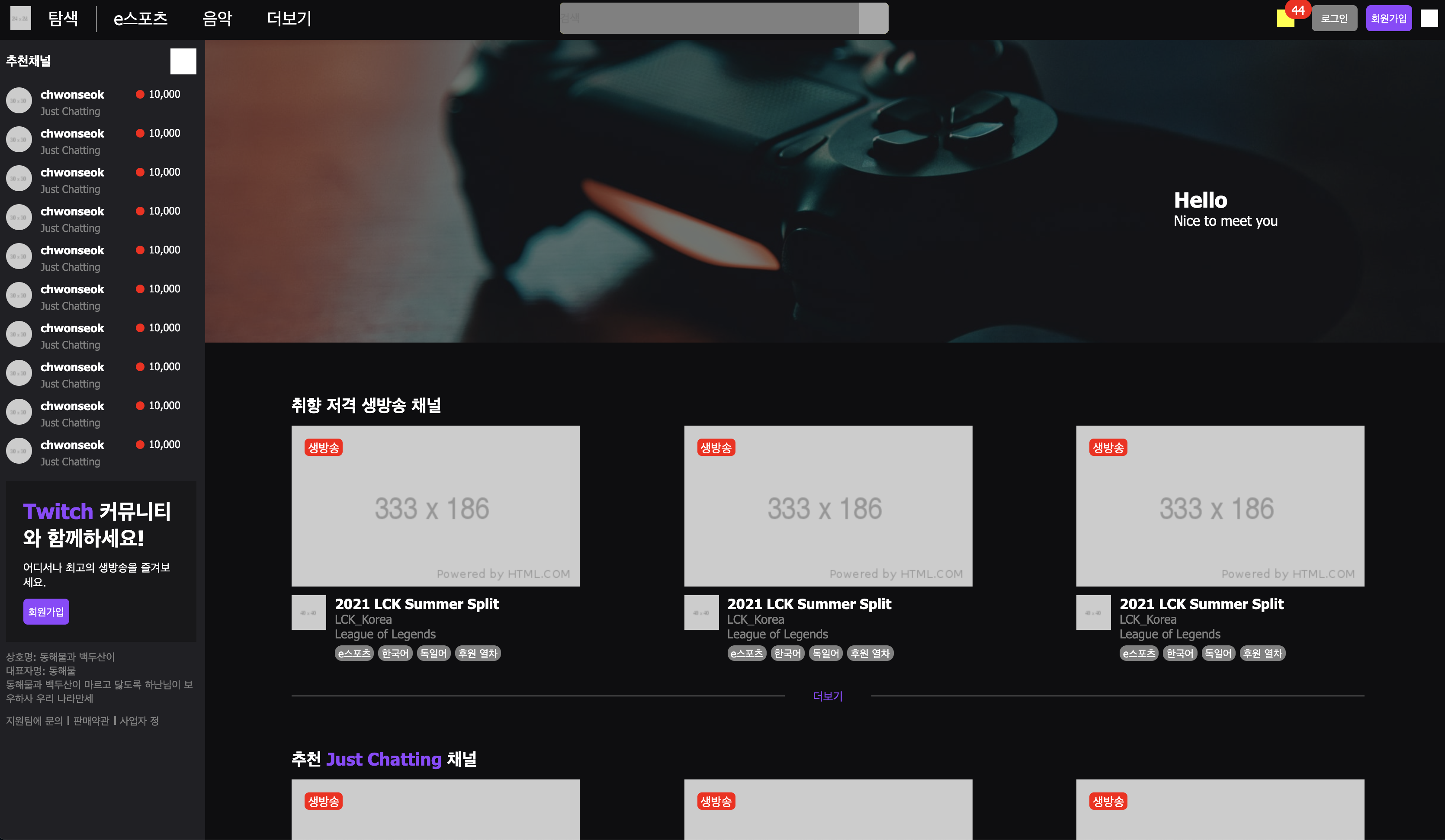 오늘은 트위치의 메인 페이지를 클로닝하였다.