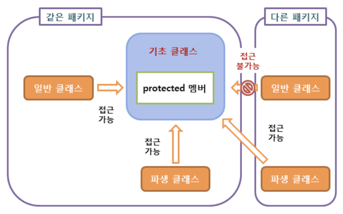 protected 멤버에 접근할 수 있는 영역은 다음과 같다.