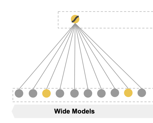 Wide는 Memorization을 담당하는 generalized linear model을 의미