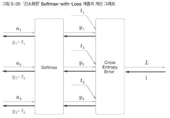 Softmax 계층의 역전파는 y-t라는 결과를 내놓음.