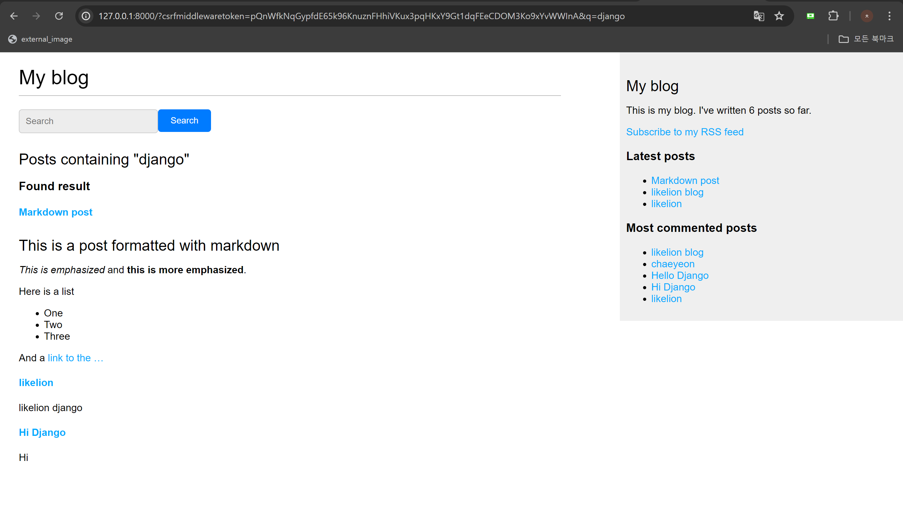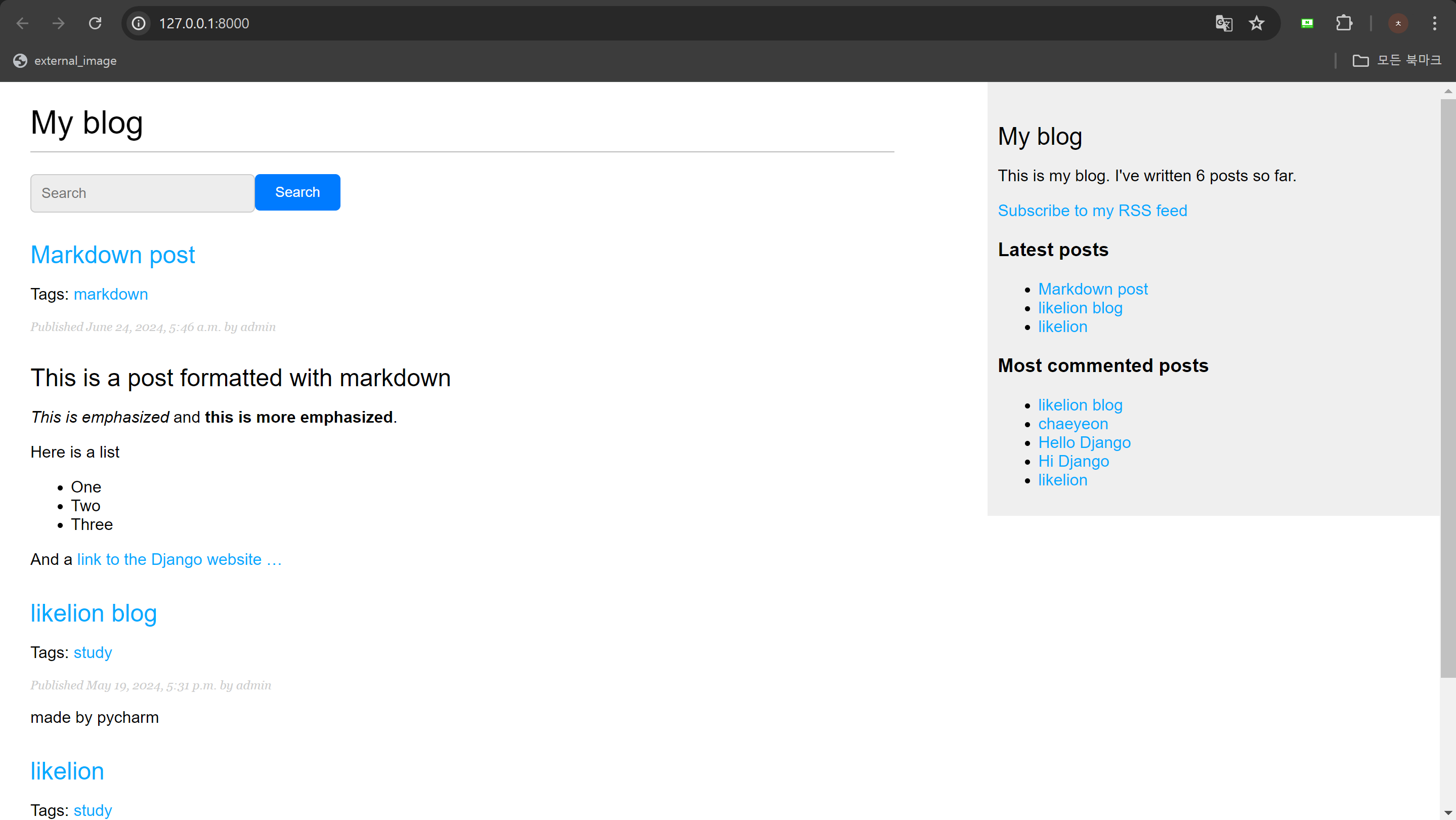마크다운을 사용해 블로그의 게시물을 쉽게 작성하고, 사이트맵을 통해 블로그를 직관적으로 확인할 수 있도록 기능을 추가한다. 더하여 블로그 게시물용 피드를 만들고 검색 기능을 추가해 장고를 마무리한다.