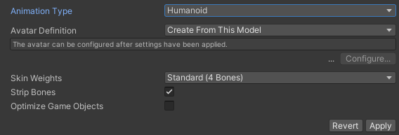 위 사진처럼 Animation Type에 들어가는것이 Humanoid 타입이 있다.